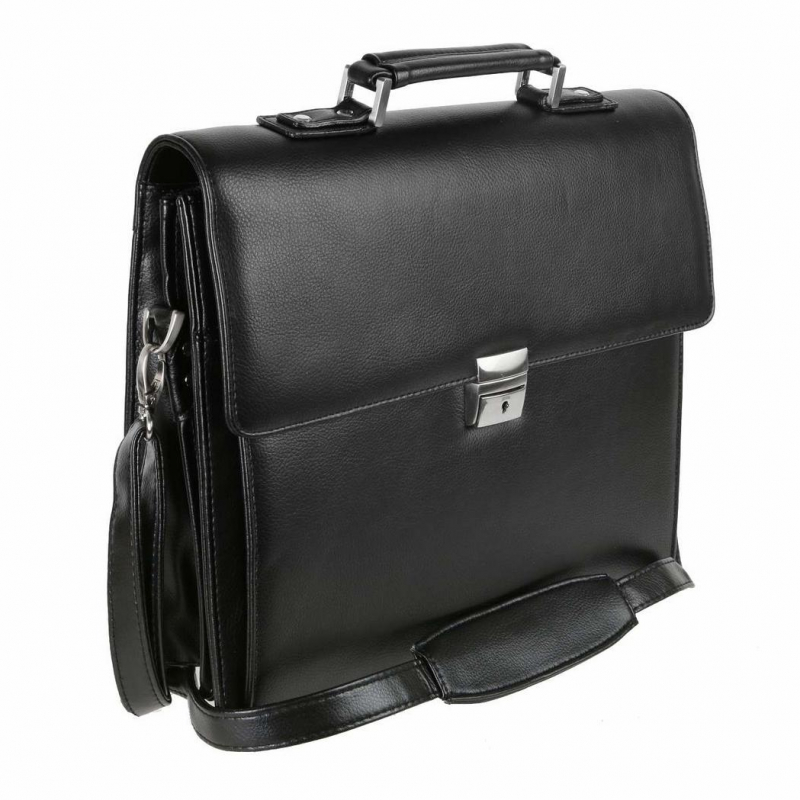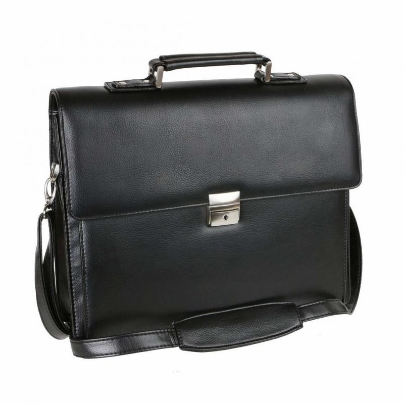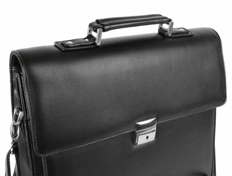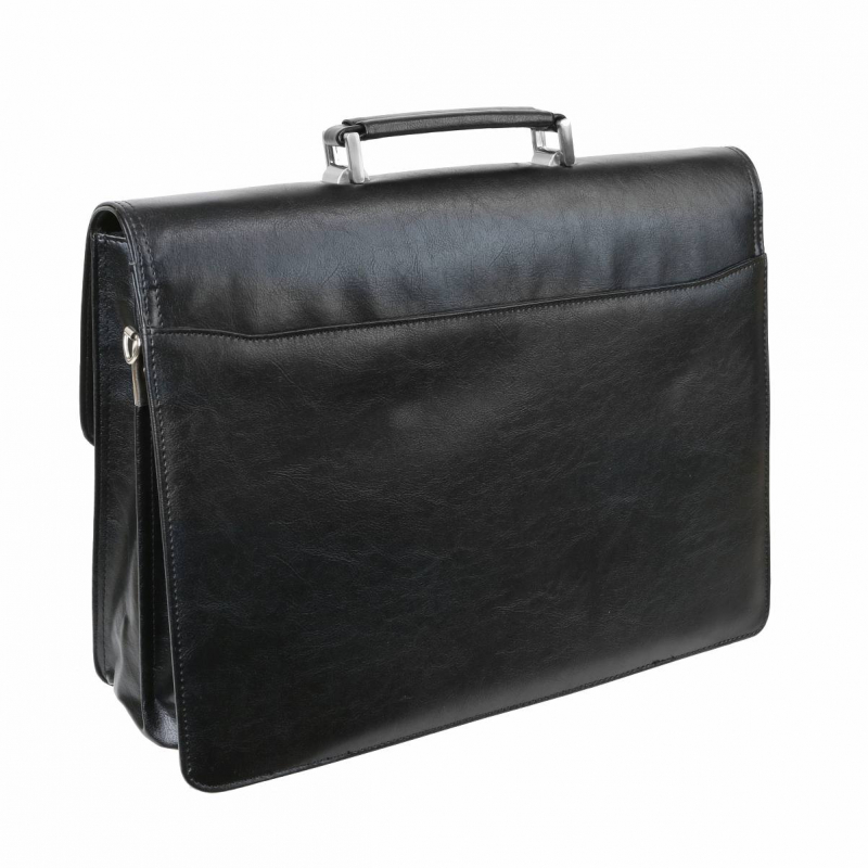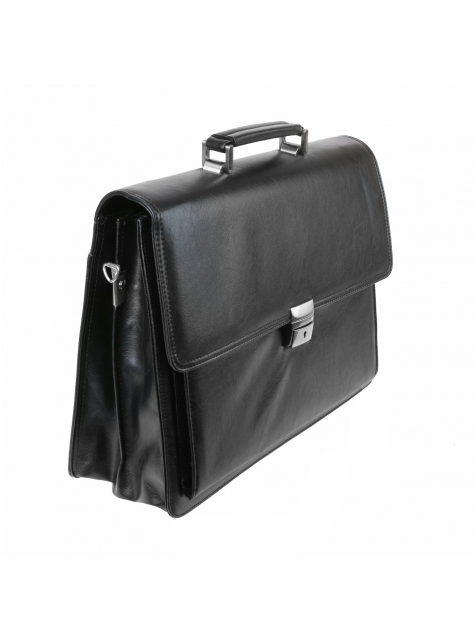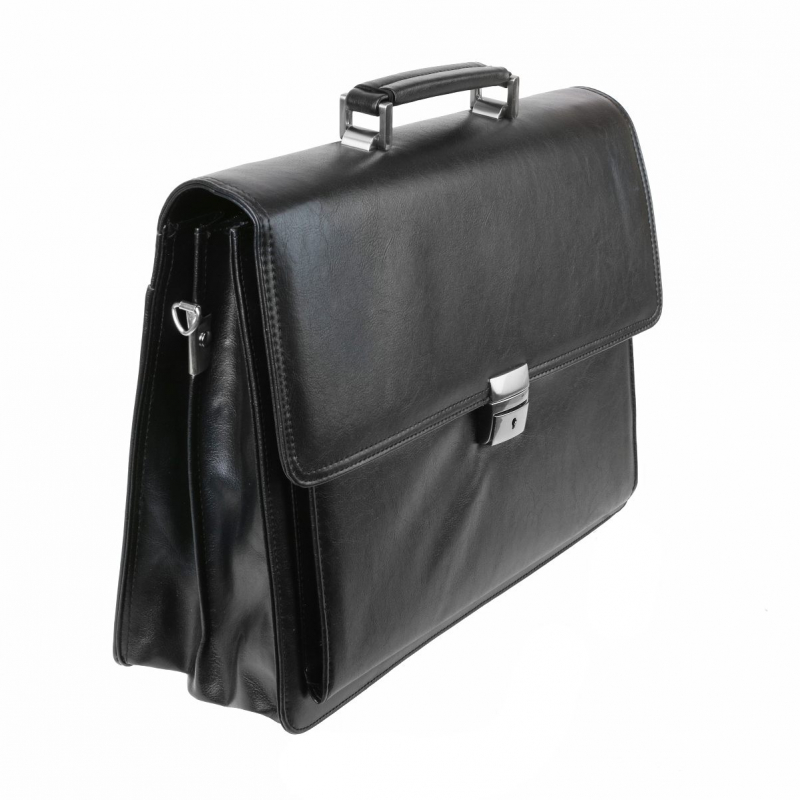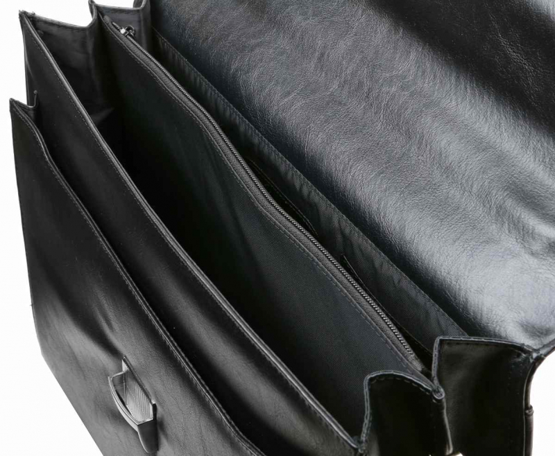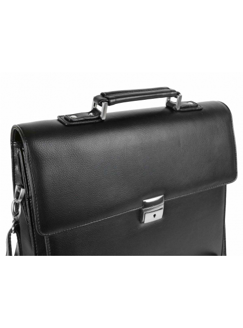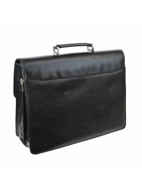 Elegantná pánska aktovka na dokumenty z čiernej koženky. Obsahuje 2 komory, 1 predný priečinok a 1 zadný priečinok.