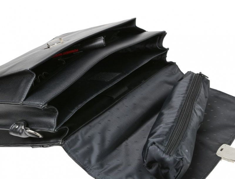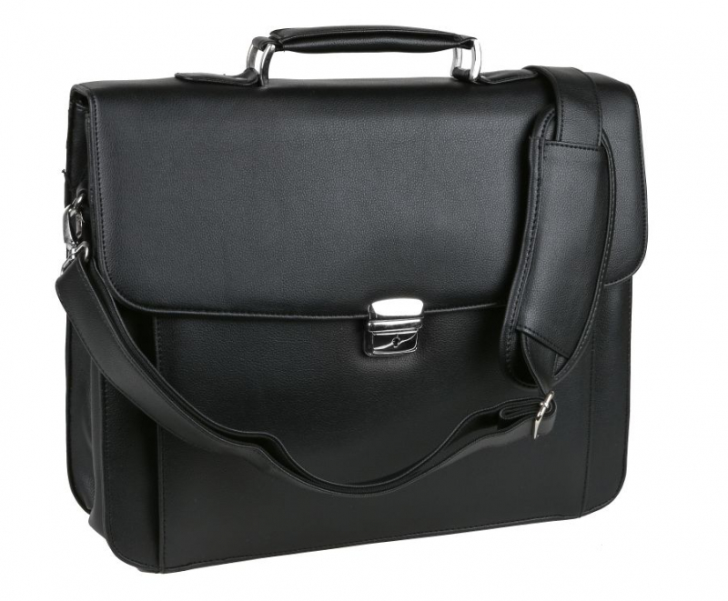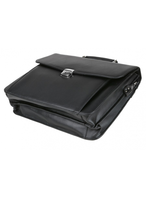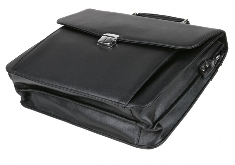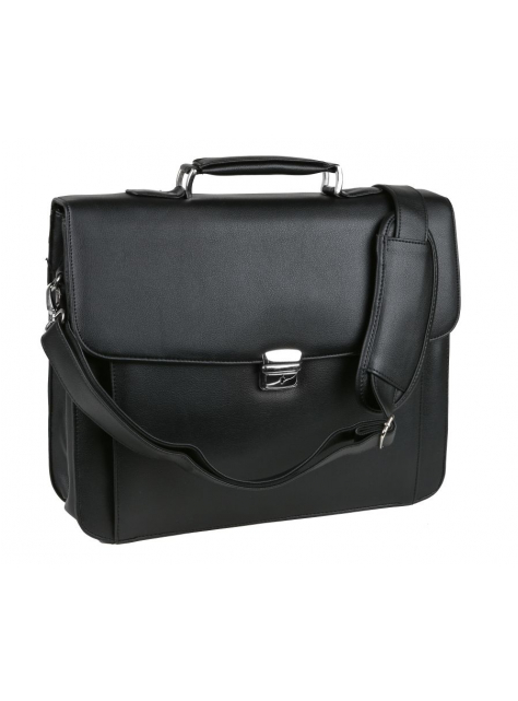 Aktovka z kvalitnej masívnej umelej kože s veľkým úložným priestorom - samostatný priečinok na notebook. Uzatváranie na kovovú pracku.