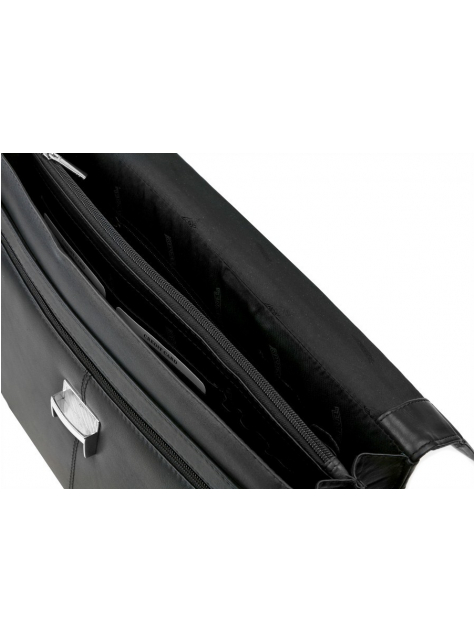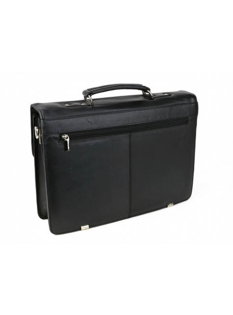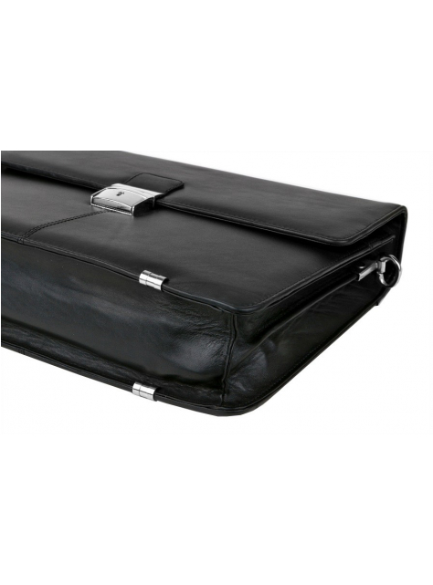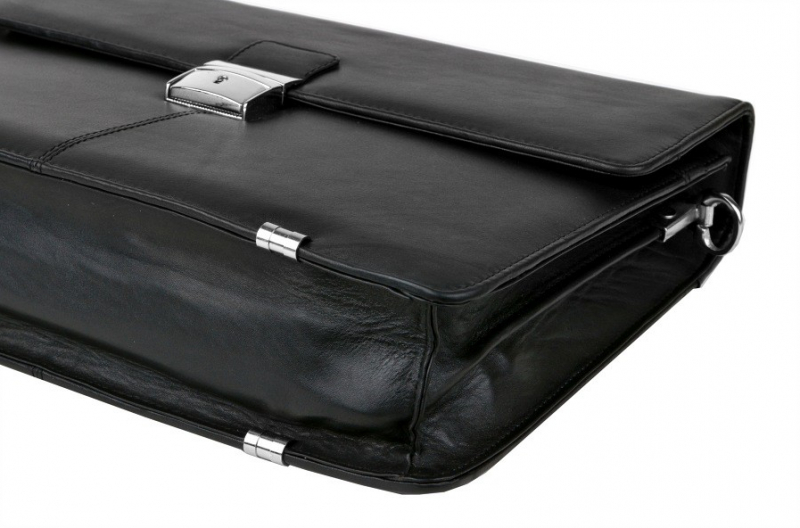 Čierna kožená aktovka menšieho typu. Elegantné prevedenie, kvalitné vypracovanie, spevnené hrany, spodné hrany chránené kovovými nôžkami. Unisex model pre dámy aj pánov. Vhodná pre dokumenty A4.