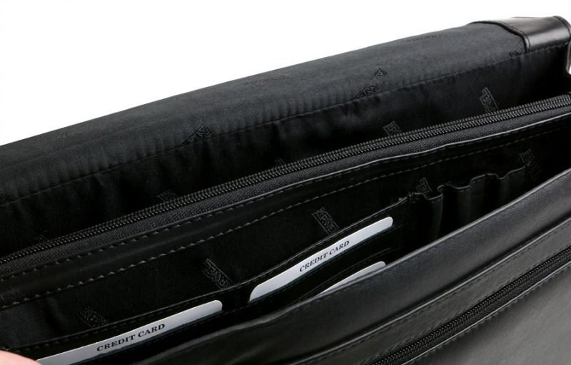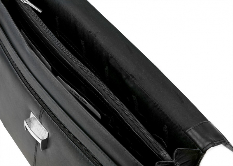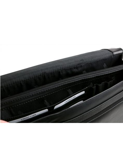 - 2 vnútorné komory, predelené 1 zipsovou plochou medzistenou, vo vnútri malé priehradky na vizitky, 1 príručné vrecko otvorené, 1 príručné vrecko zipsové