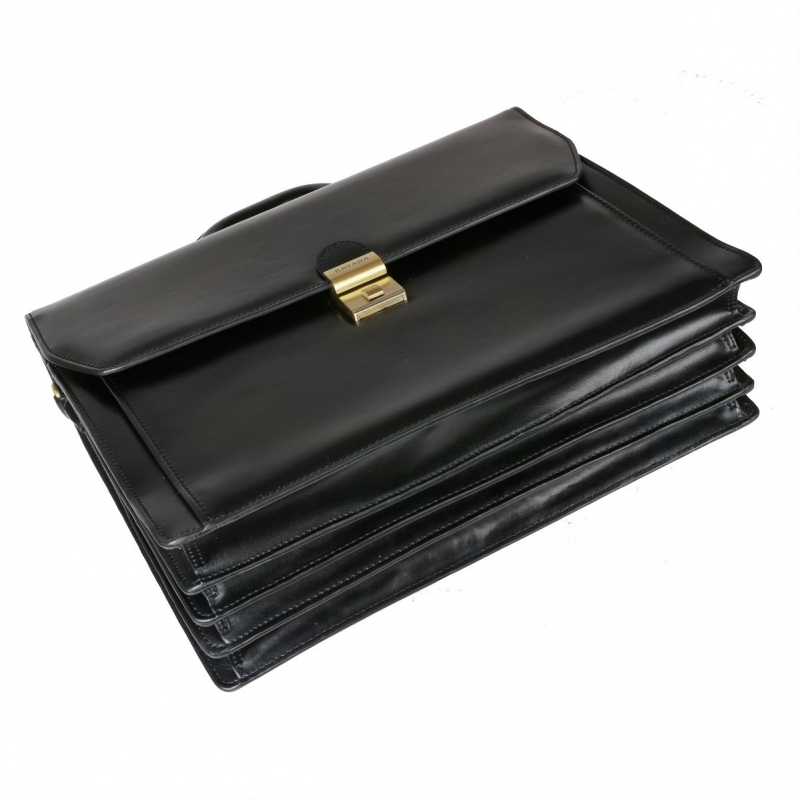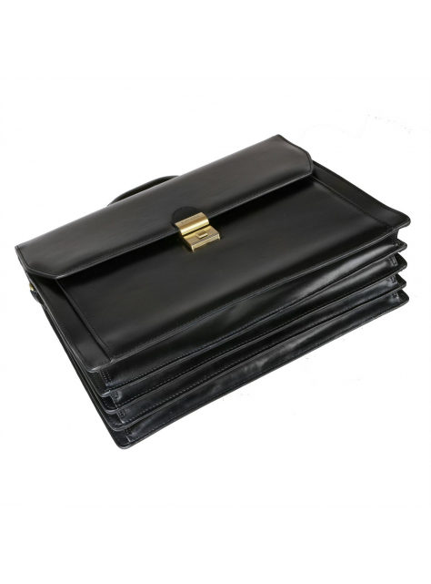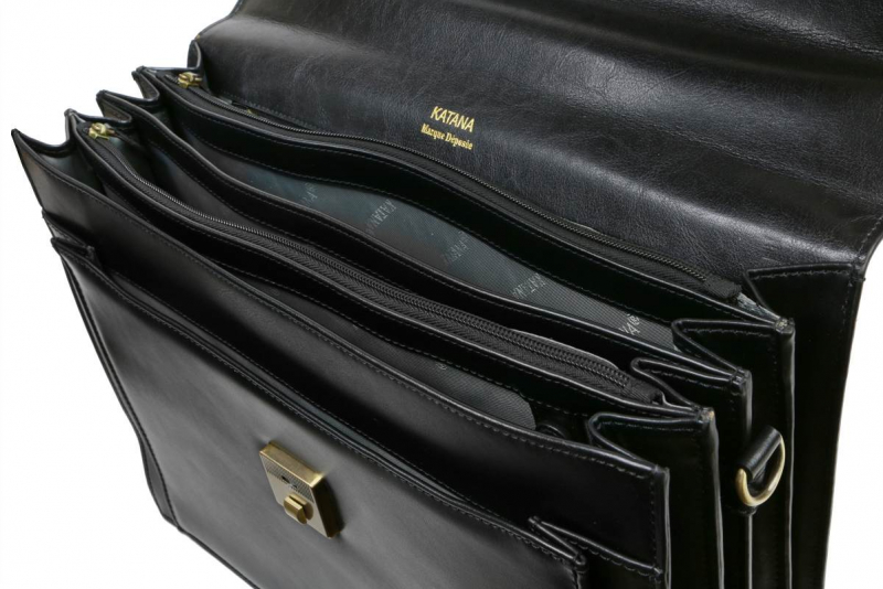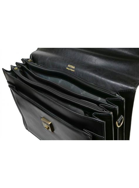 Aktovka KATANA z kvalitnej masívnej kože s veľkým úložným priestorom - 4 komorová s 2 predeľujúcimi zipsovými priečinkami, medzistenou a ďalšími 3 priečinkami pre A4 dokumenty. Uzatváranie na zaklapovací kovový zámok. Stabilné státie na spevnených hranách.