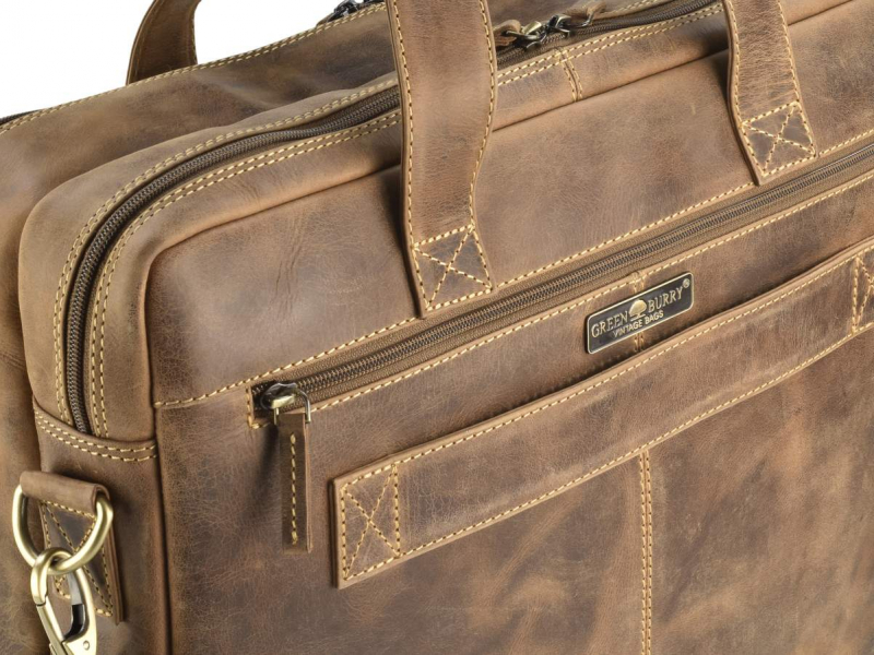 Aktovka-taška s rúčkami zn. GreenBurry Vintage rozmerov 43 x 34 x 14 cm je aktovka väčšieho typu určená na dokumenty A4, notebook a ďalšie osobné veci.