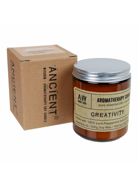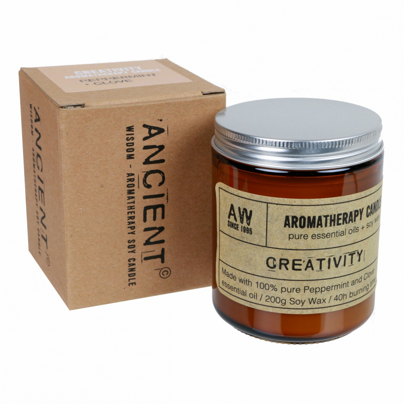 Aromaterapeutická sviečka - CREATIVITY s obsahom vosku 200ml - zo 100%-ne čistých éterických olejov a prírodného sójoveho vosku.