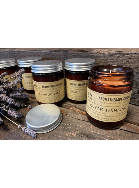 Sviečky v kombinácii čistých olejov tak, aby podporovali jasné myslenie, relaxáciu, energiu, dobru náladu a viac. Sklenená fľaštička z jantárového skla vkusne doplní každú miestnosť v domácnosti alebo kancelársky interiér. Recyklovateľné sklenené nádoby je možné opätovne použiť. Sviečka je balená v krabičke z kraftového papiera. Váš ideálny darček pre každú príležitosť. Vyrobené zo 100% Levandule a Pelargónie esenciálneho oleja.