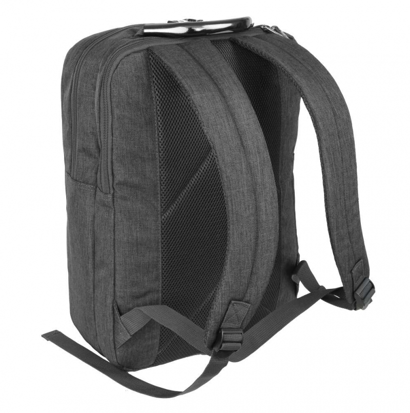 Zadná strana batohu vystužená a doplnená systémom odvetrania chrbta pri dlhšom nosení. Polstrované popruhy na ramená nastavitelné na potrebnú dĺžku.