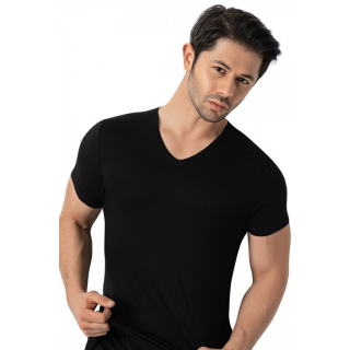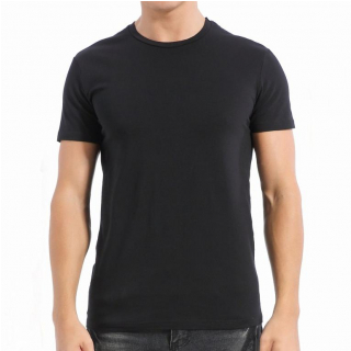 Pánske čierne tričko s krátkym rukávom. Tričko z bavlneného vzdušného materiálu, užšie lemovanie okolo krku. Strih rovný, bez bočných švov.