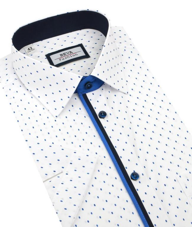 Trendová pánska SLIM košeľa z kolekcie BEVA FASHION - krátky rukáv, zoštíhlený slim strih - štýl športovej elegancie do obleku aj k džínsom.