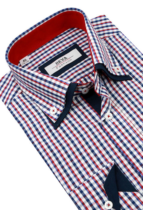 BEVA Fashion | Modro-červená károvaná košeľa (slim)
