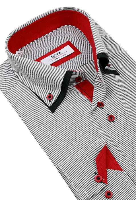 BEVA Fashion | Šedá prúžkovaná košeľa s červeným podšitím (slim)