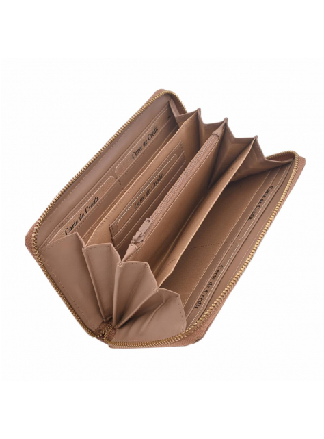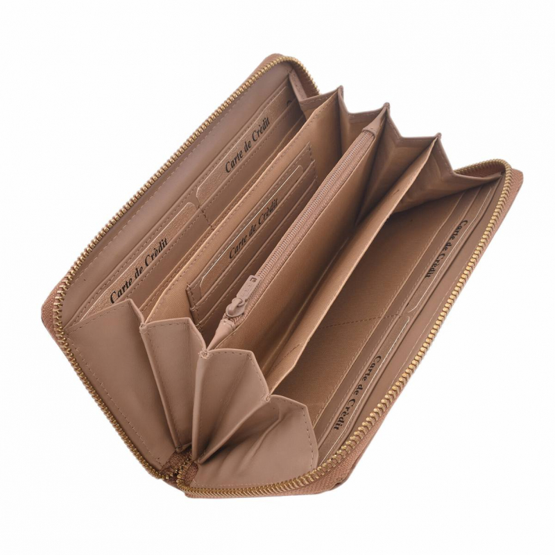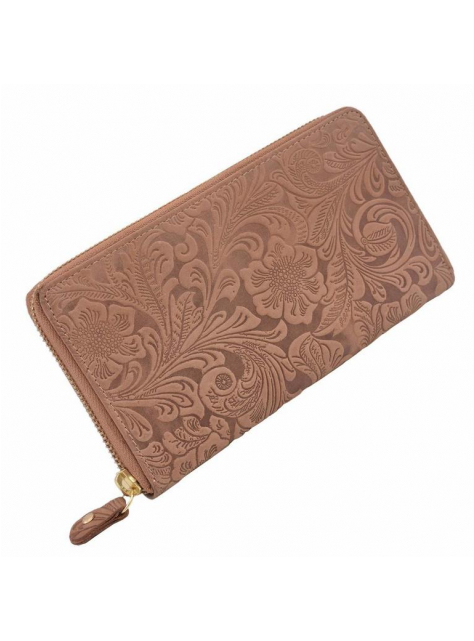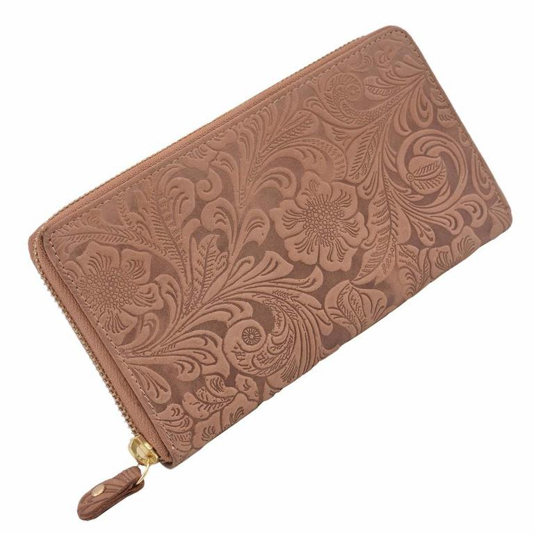Elegantná dámska peňaženka MERCUCIO béžovej farby. Listová peňaženka s elegantnou brúsenou potlačou kvetov. Vejárovité otváranie, uzatváranie zipsom v zlatej farbe.