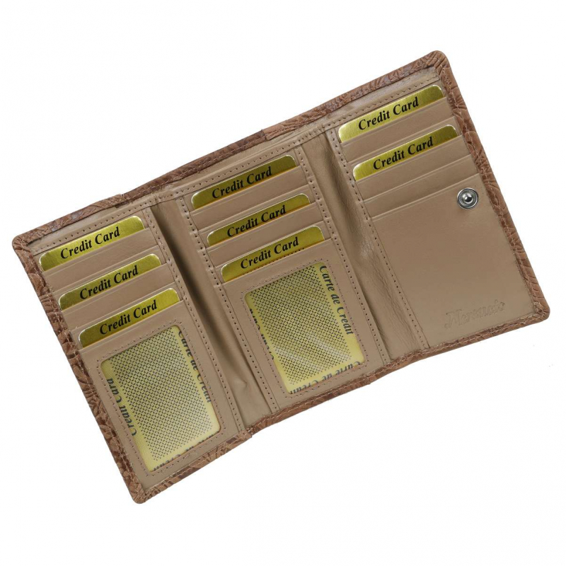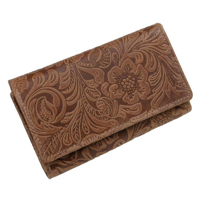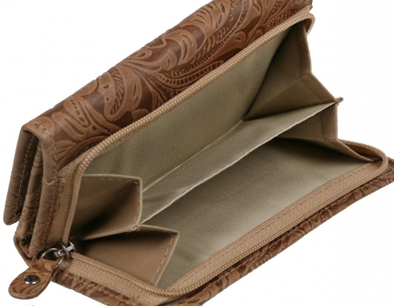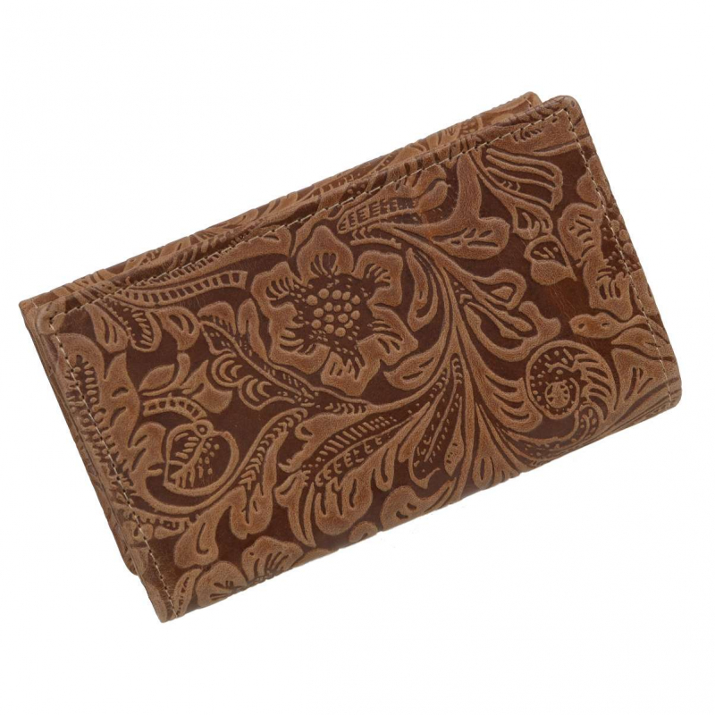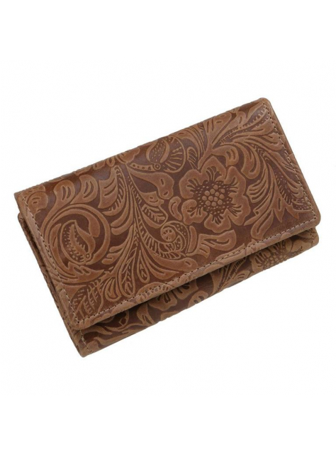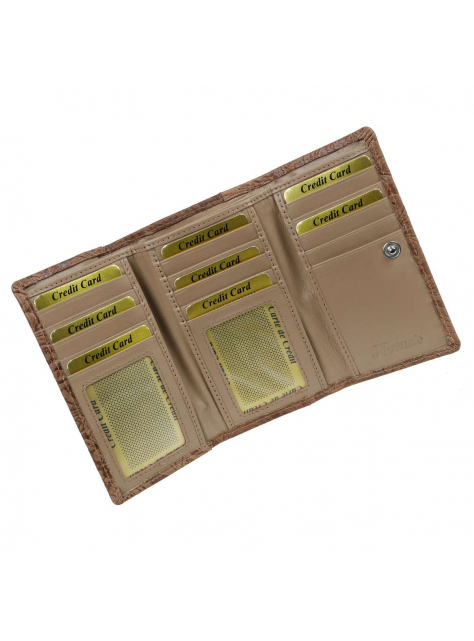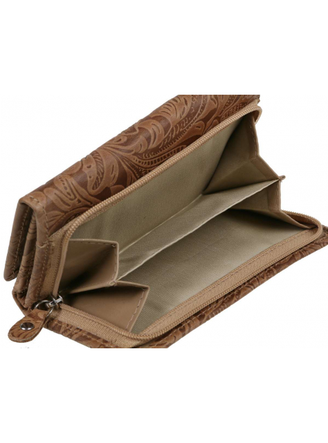 Béžová peňaženka s reliéfom kvetov, stredná 15 kariet