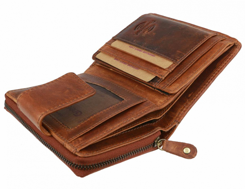 Peňaženka GreenLand Soft RFID, veľký zipsový mincovník, hnedá