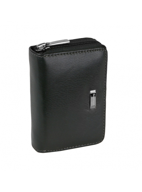 Čierne kožené pudro so zipsom, určené na karty, poslúži tiež ako vizitkár. Malý praktický formát s prehľadným vejárovým usporiadaním.
