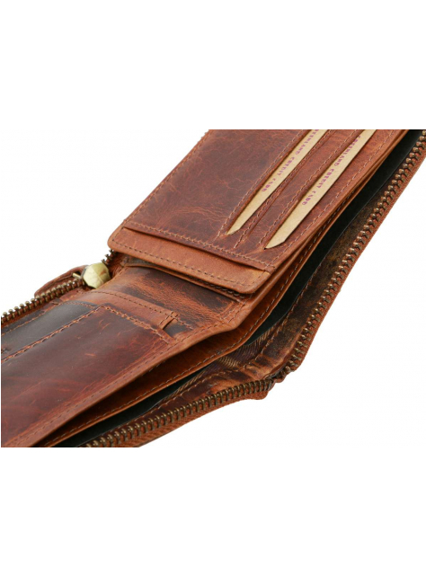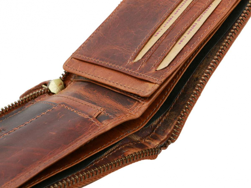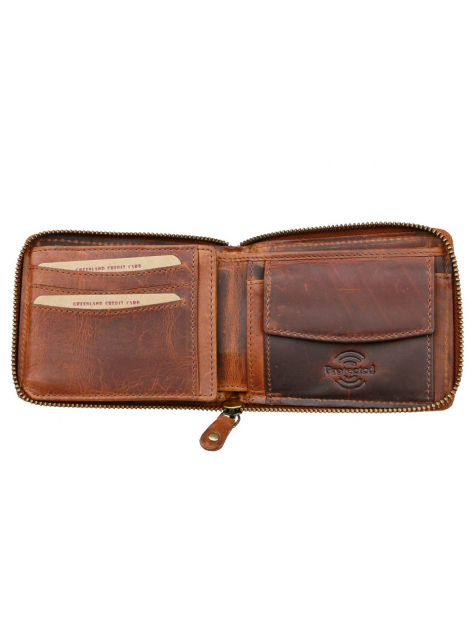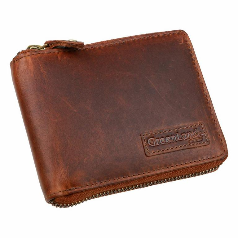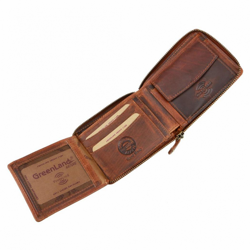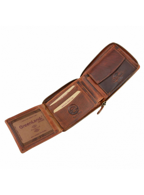 Praktická pánska kožená peňaženka GREENLAND. Pánska peňaženka formátu na šírku z kvalitnej kože so zapínaním zipsom.