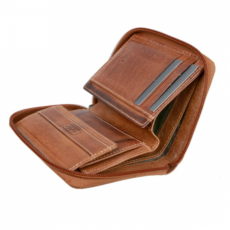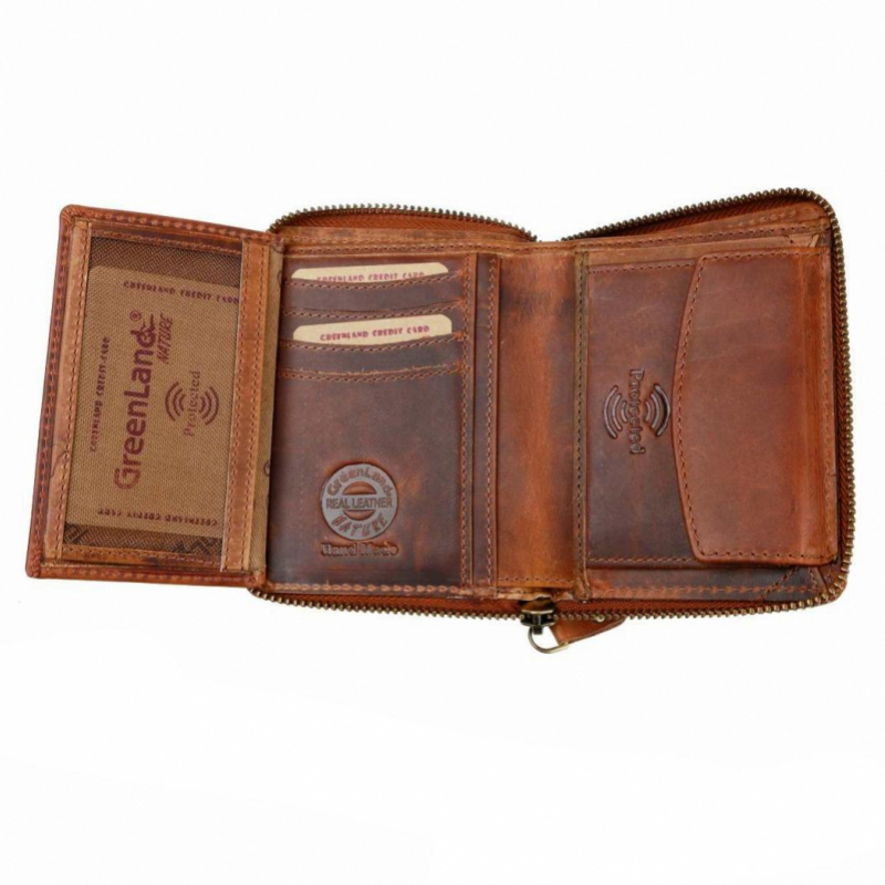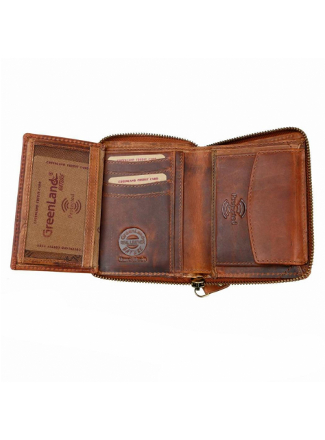 Praktická pánska kožená peňaženka GREENLAND. Pánska peňaženka formátu na výšku z luxusnej kože so zapínaním zipsom.