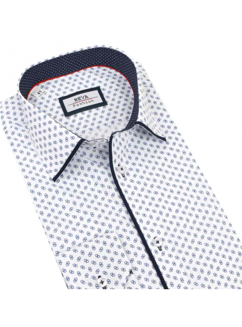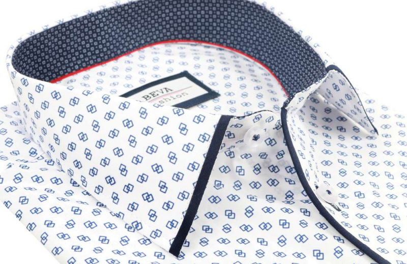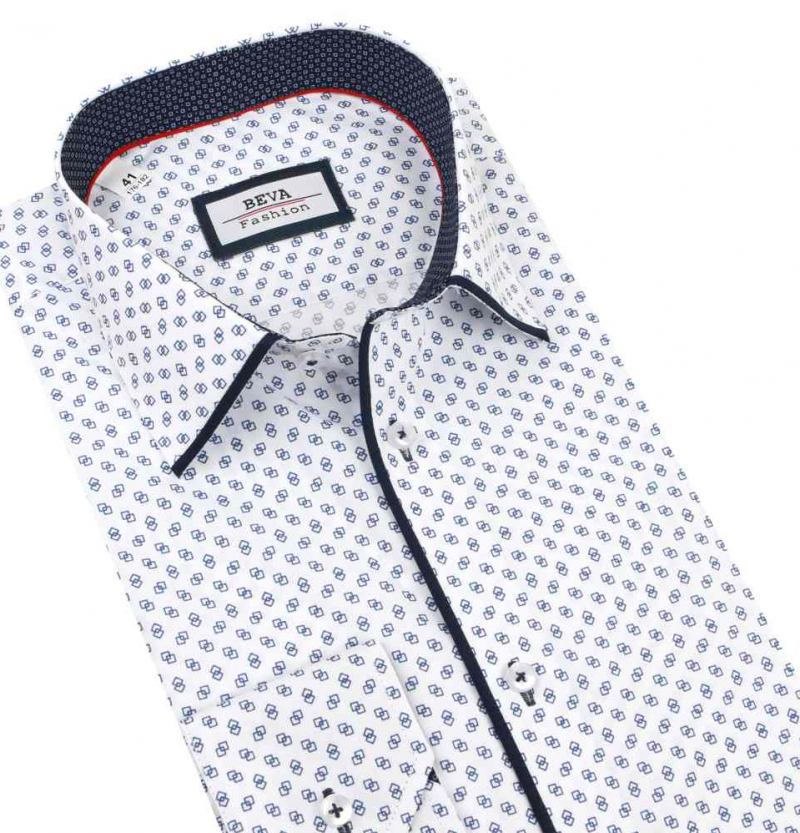 Elegantná pánska košeľa v módnom štýle zn. BEVA FASHION - biela s potlačou drobného vzoru. Košeľa s moderným vzorom s dlhým rukávom.