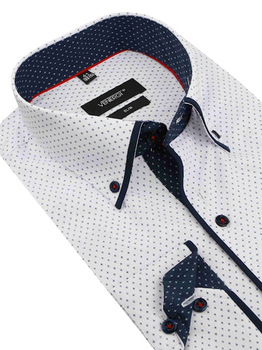 Bielo-modrá košeľa VENERGi (predĺžená slim)