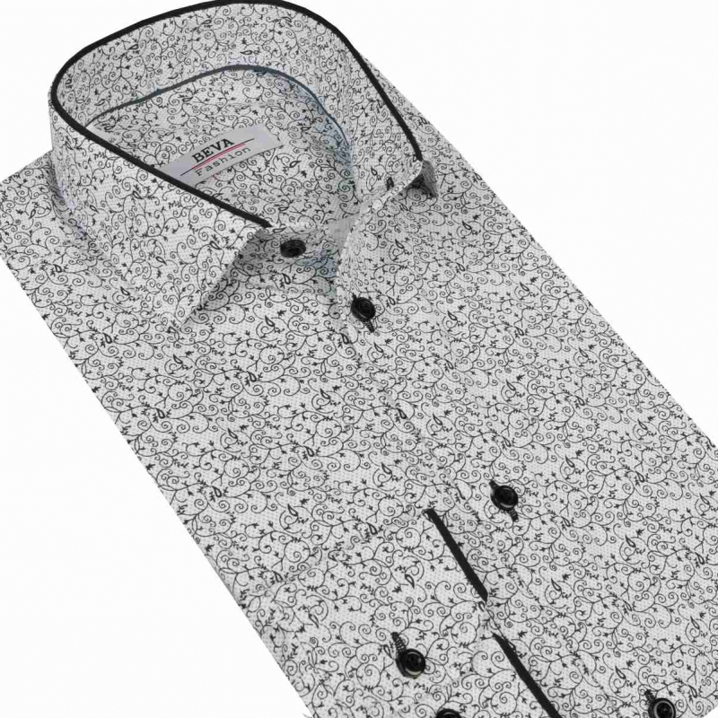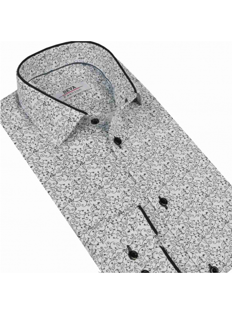 Športovo-elegantná pánska slim košeľa BEVA Fashion s dlhým rukávom. Zoštíhlený slim strih, na výšku postavy 176-182 cm.