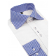 - zapínanie košele na gombíky, gombíky biele, modré šitie a modré dierky, gombíková léga s podšitím, náprsné vrecko.