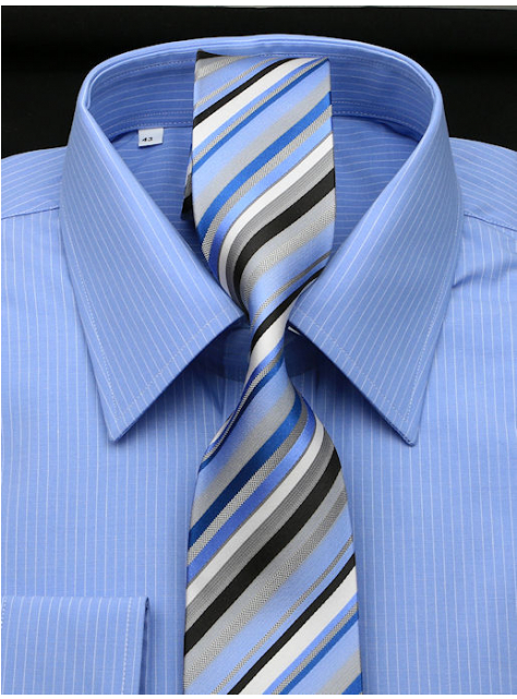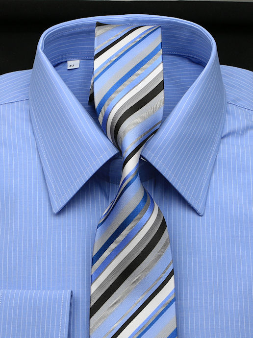 - košeľa s dlhým rukávom, ukončeným francúzskou manžetou (manžeta na manžetové gombíky)