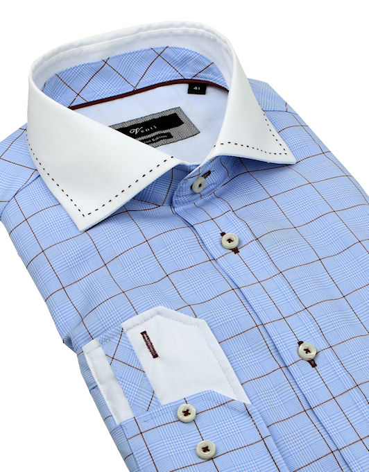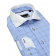 Biznis štýl | Modrá károvaná košeľa s bielym golierom VENTI (super slim)