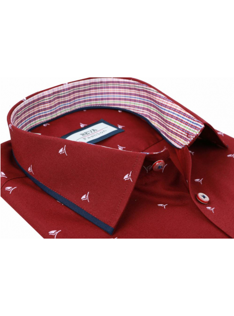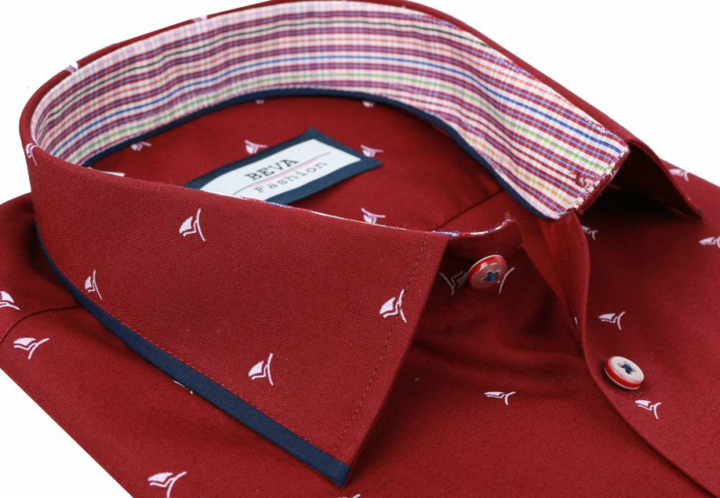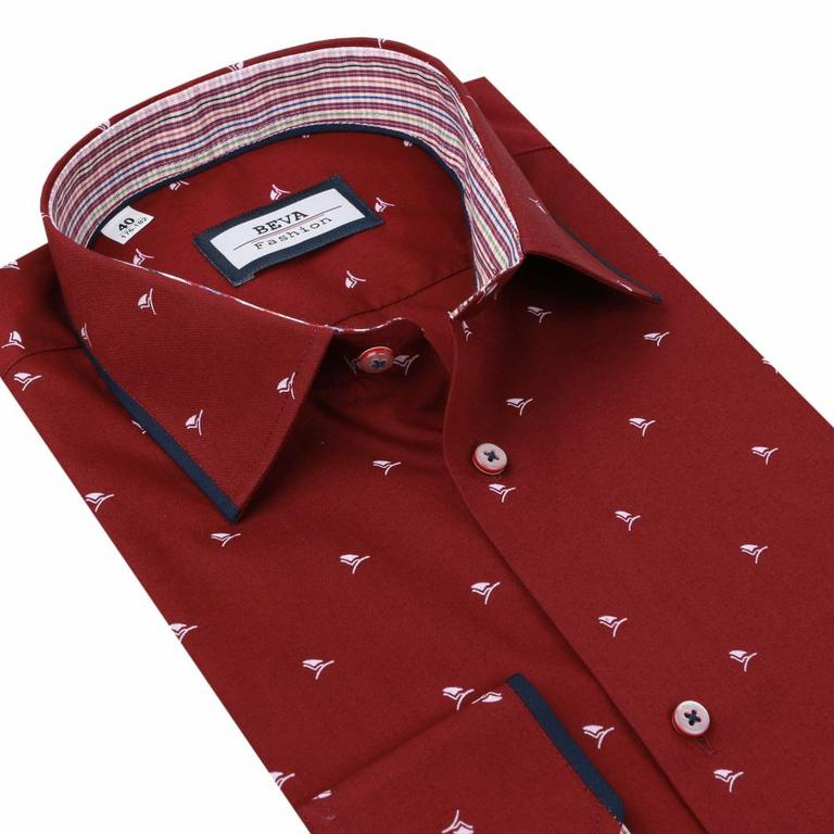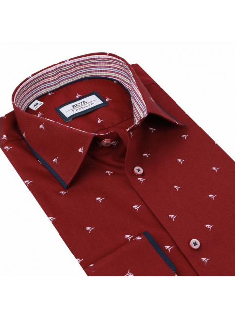 Ponúkame Vám trendovú pánsku košeľu zn. BEVA FASHION v slim strihu - bordová farba. Nadčasová košeľa s moderným vzorom s dlhým rukávom.