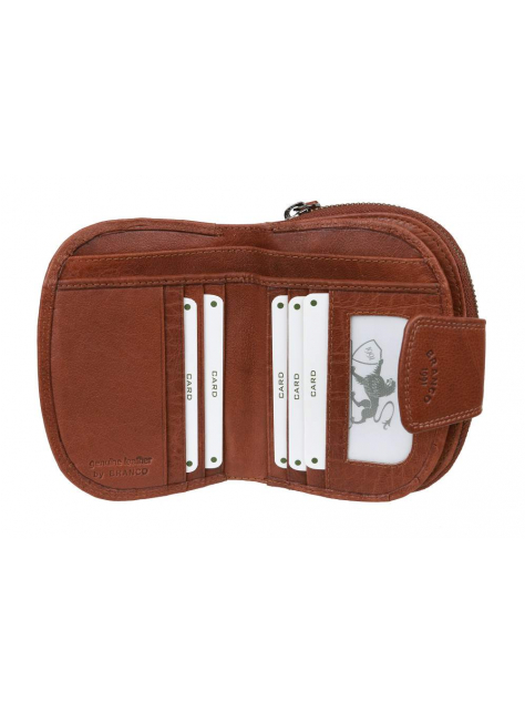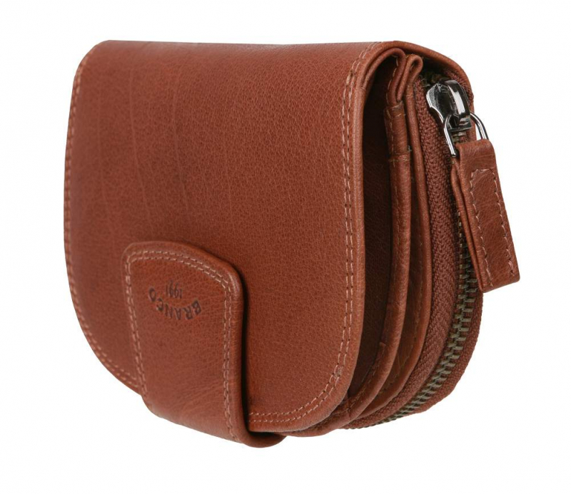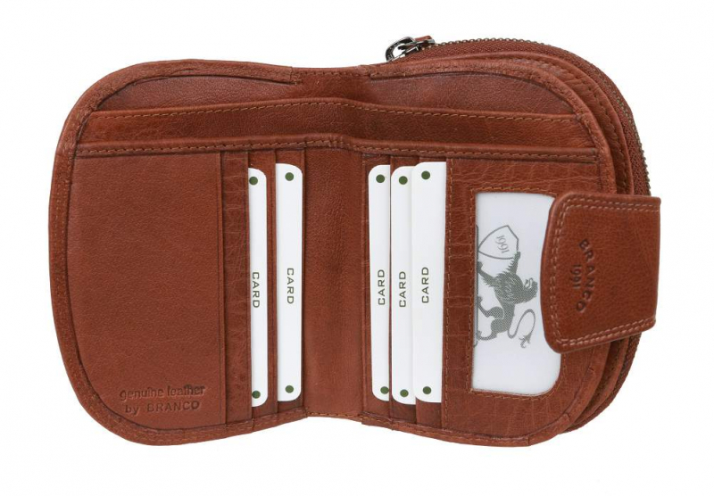 Kožená dámska peňaženka BRANCO, oddelený mincovník a dokladová časť. Praktický formát s uzatváraním zipsom aj kovovým patentom.
