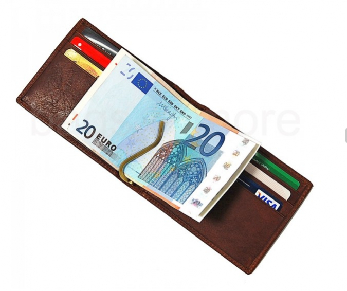 Kožená peňaženka - dolárovka - so sponou na bankovky. Vhodná pre doklady nového typu.