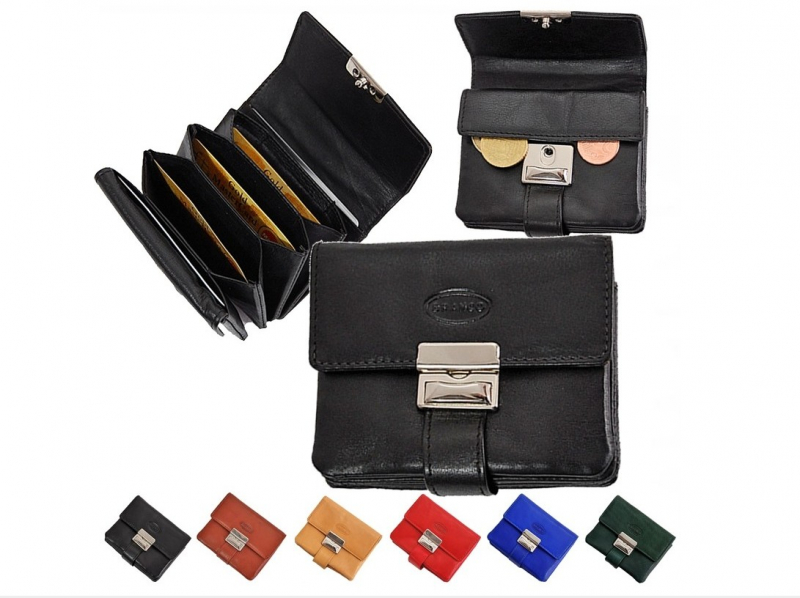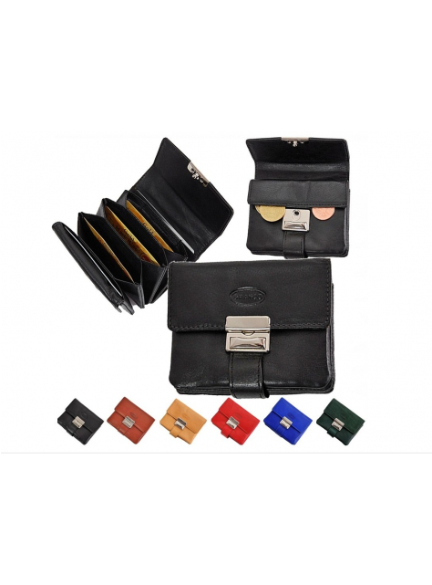 Kožená minipeňaženka a puzdro formátu do ruky s kovovým zaklapovacím uzáverom. Farba - slamovo-žltá.