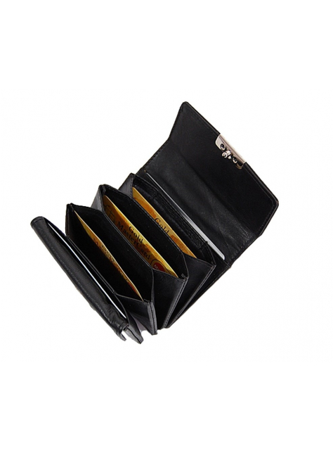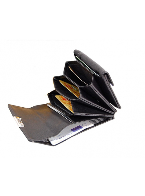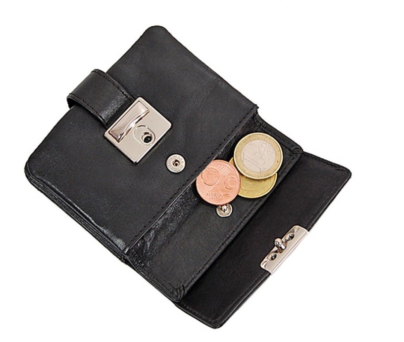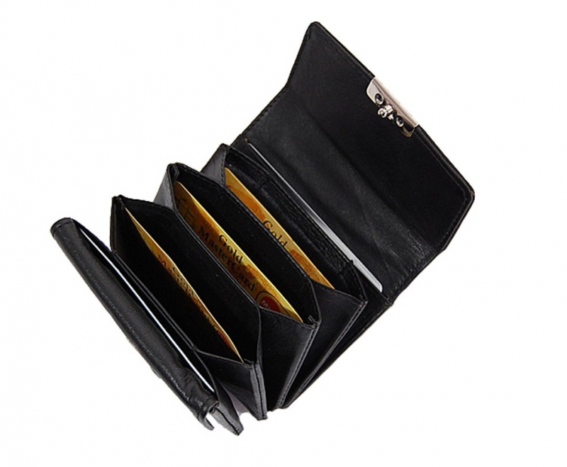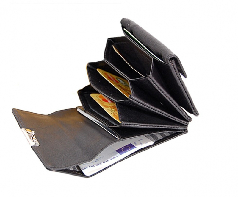Vnútri priehradka s poklopom na kovový patent, oddelenie pre karty, doklady a bankovky.