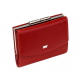 Dámska luxusná kožená peňaženka s kovovým rámom. Elegantný model v príjemnej malinovo-červenej farbe.