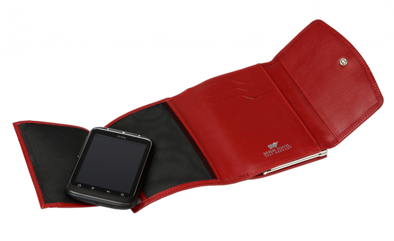 Vnútro - koža, mincovník - červené kožené vnútro, podšívka v časti na bankovky, kovová spona - kvalitný masívny kov striebornej farby, matný