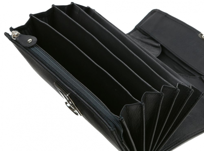 Vybavená množstvom priehradok pre bankovky, klasickým zipsovým mincovníkom a širokým prehľadným francúzskym mincovníkom. Celokoženkové vnútro (všetky steny, celý francúzsky mincovník vrátane zipsového mincovníka).