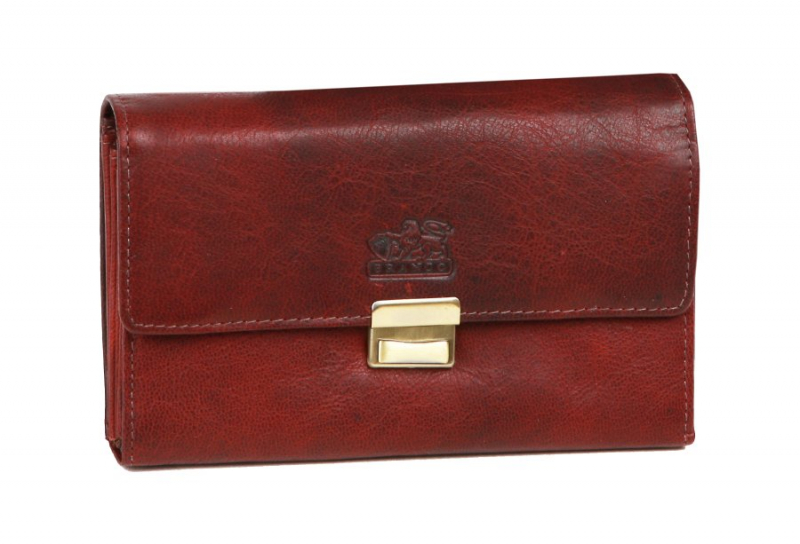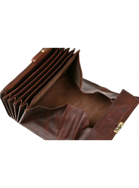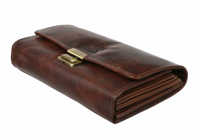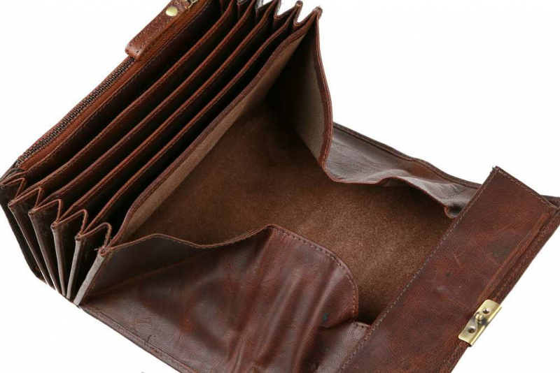 Elegantné uzatváranie na kovový patent v troch voliteľných výškach, široké vejárové otváranie. Obsahuje vejárovité priečinky pre bankovky, 2 mincovníky: celokožený francúzsky mincovník (brúsená koža). plochý mincovník so zipsom.