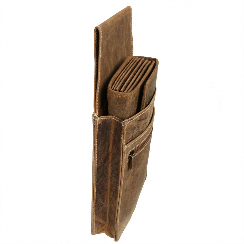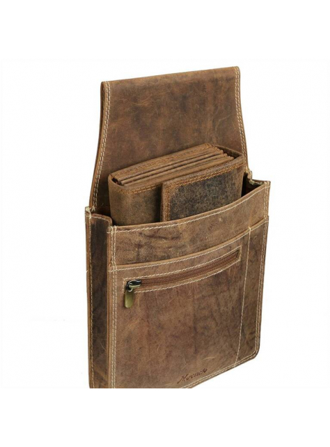 Čašnícky kožený set 2-dielny MERCUCIO Vintage z brúsenej kože obsahuje čašnícku kasírku a celokožený držiak (puzdro na opasok).