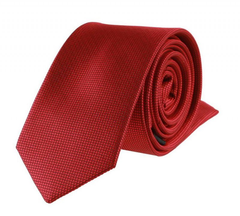 Červená SLIM kravata s drobnými štvorčekmi 6 cm