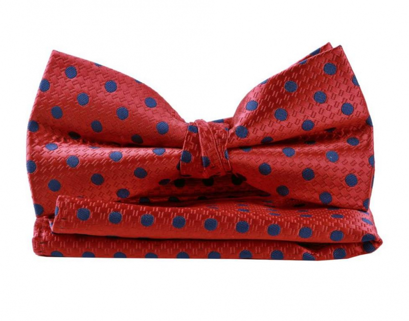 Červený set motýlika a vreckovky s bodkami ORSI A14