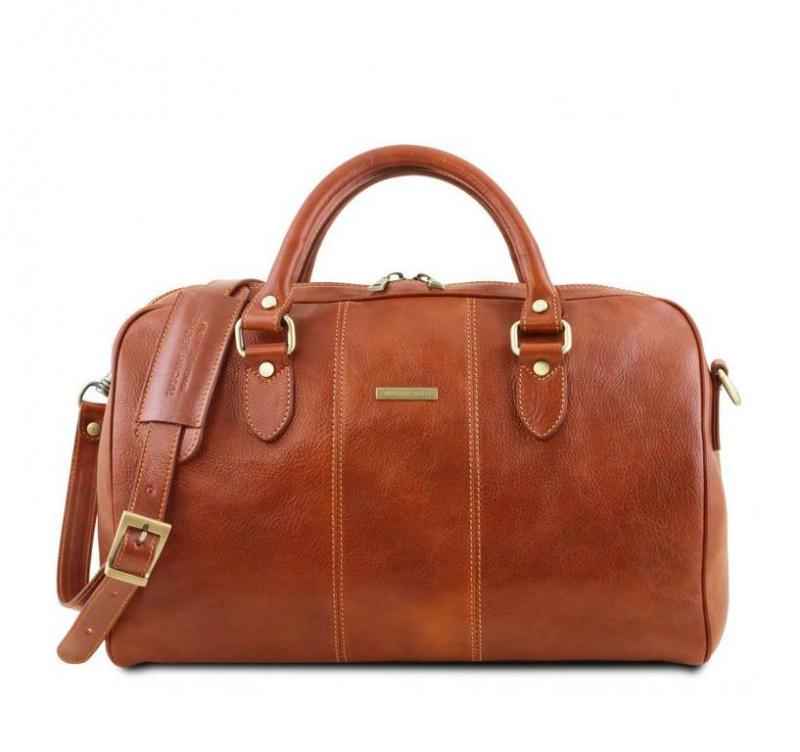 Víkendová kožená cestovná taška na príručné veci TUSCANY LEATHER z kolekcie LISBONA. Cestovná taška sa prenáša na ramene, prípadne v ruke za kožené rúčky.