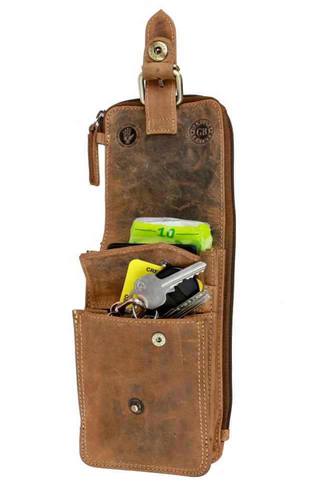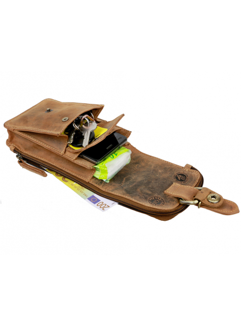 Multifunkčné kožené puzdro-peňaženka na opasok GREENBURRY - kombinované pre rôzne nosenie - praktická veľkosť do ruky alebo nosenie na opasku. Vyrobené z kvalitnej pevnej kože.