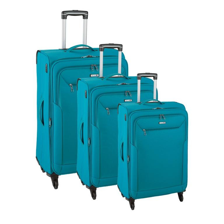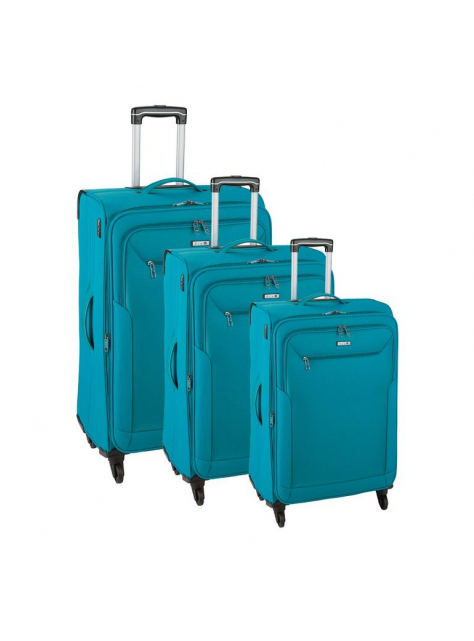 Sada 3 kusov cestovných kufrov D&N v peknej tyrkysovo-modrej farbe. Extra ľahké kufre z nepremokavého nylonu 600D, s dobrou a praktickou ľahko umývateľnou plochou.