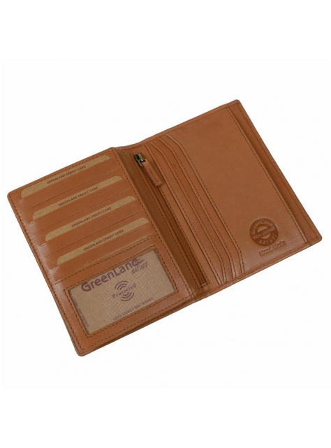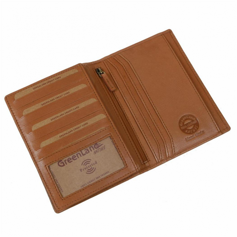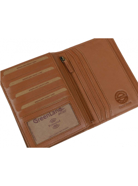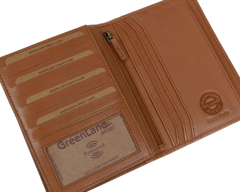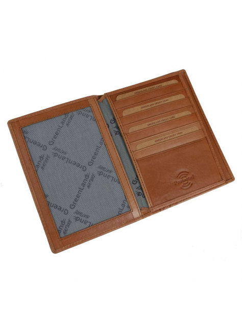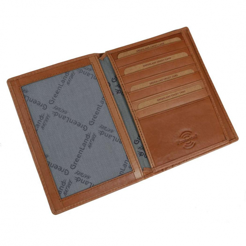 Luxusné kožené puzdro GREENLAND určené na karty a osobné doklady, cestovné pasy. Farba - hnedá camel.
