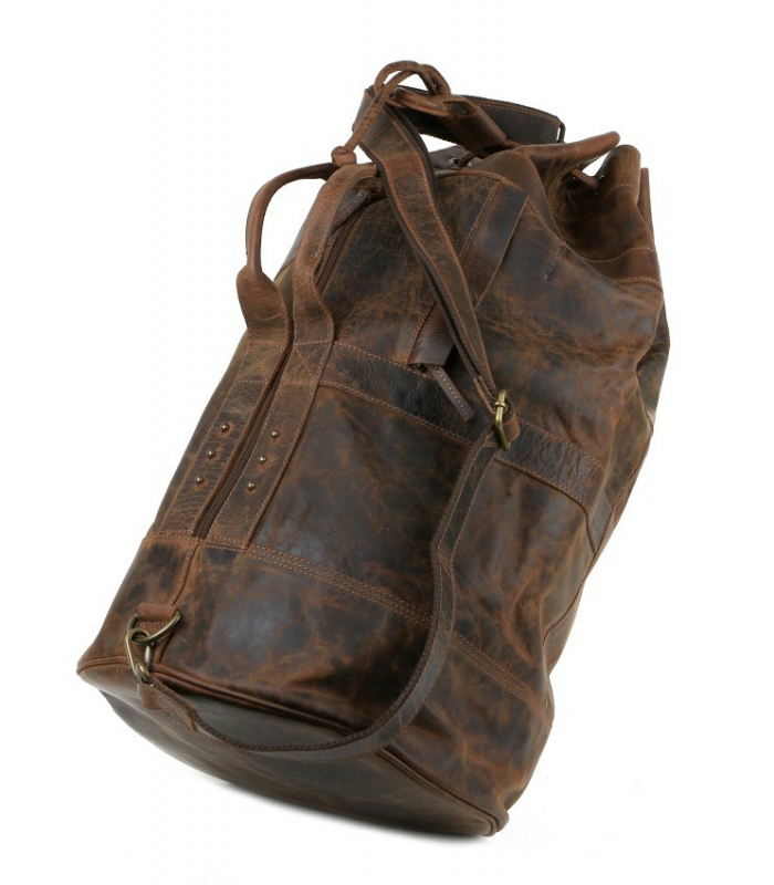 Variabilná cestovná taška - "Seesack - vak pre morských vlkov" z kolekcie GreenLand CLASSIC. Hovädzia koža prémiovej kvality, masívna a odľahčená pre komfortné nosenie v ruke, na ramene alebo cez plece. Odnímateľný kožený popruh podšitý hrubým kanvasom.