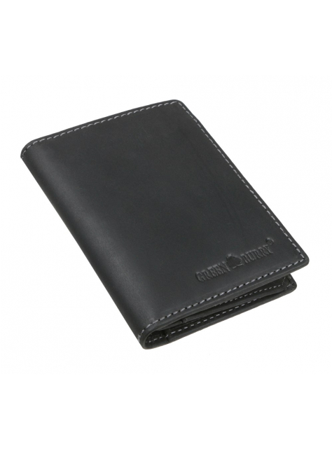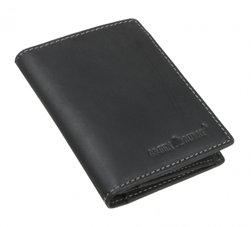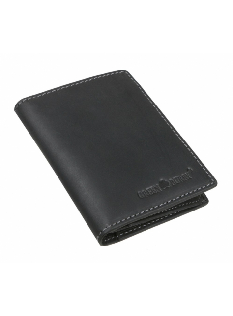 Kožené puzdro na karty a doklady GREENBURRY v čiernej farbe. Dokladovka z pravej kože s matnou povrchovou úpravou v čiernej farbe, okrajové prešívanie.