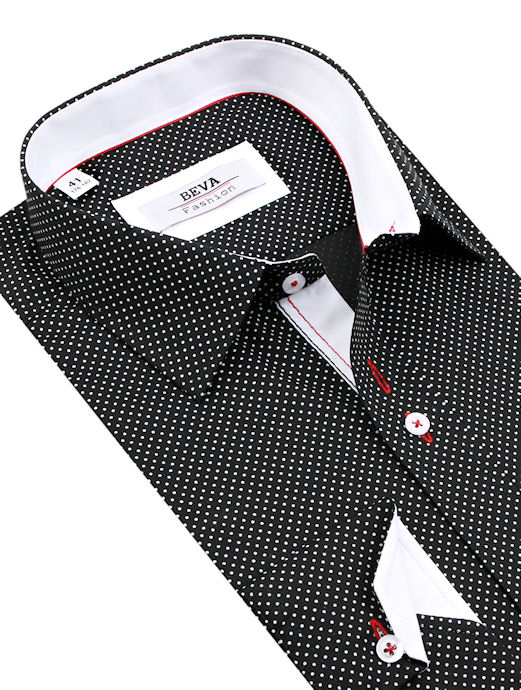 Čierna pánska slim košeľa s bielymi bodkami. Košeľa sa dá nosiť ležérne k džínsom, aj do obleku.