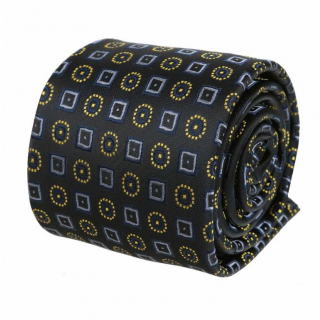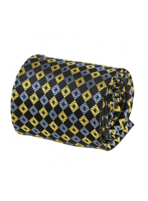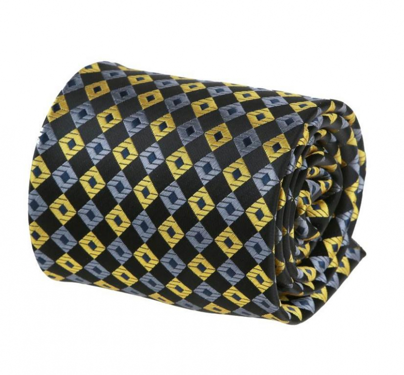 Čierna kravata so žltými a šedými štvorčekmi