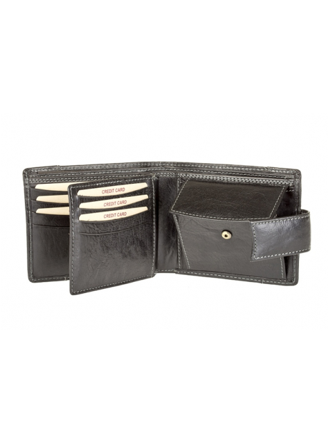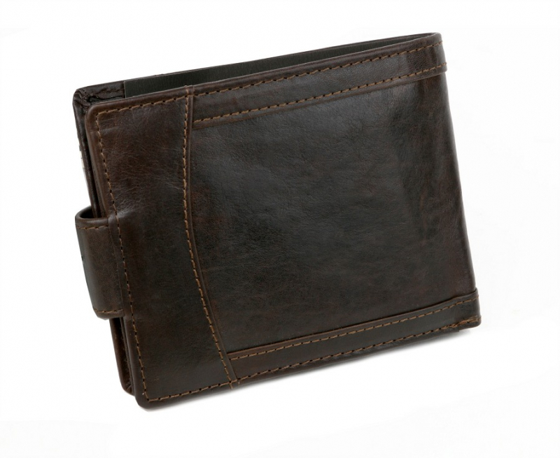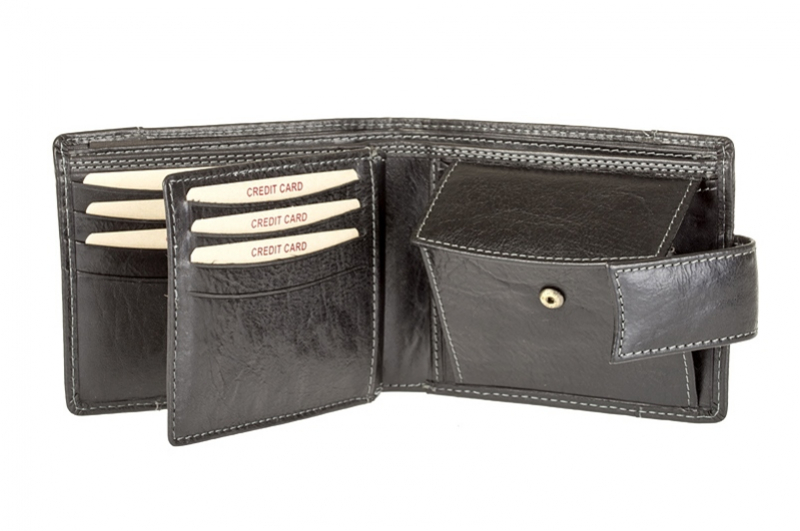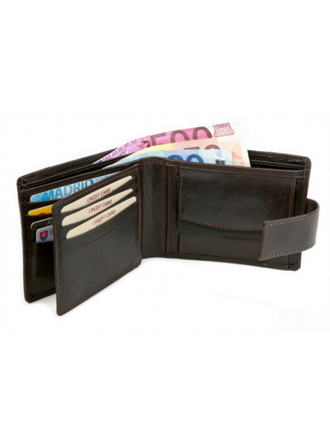 Kožená peňaženka z atraktívne spracovanej kože s luxusným dizajnom. Kvalitná koža, pevné spracovanie. Zapínanie peňaženky na pracku. Veľkosť priehradok vyhovuje pre starší typ osobných dokladov. Balenie v elegantnej krabičke.