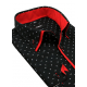 - čierna tkanina s trojbodkami, kontrasty - hladká červená tkanina