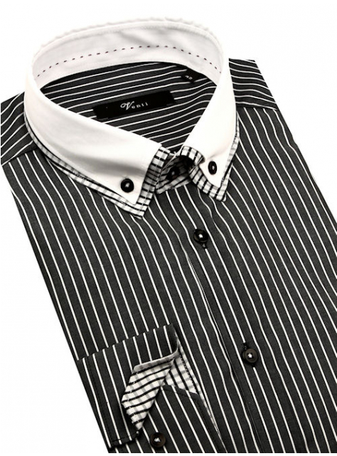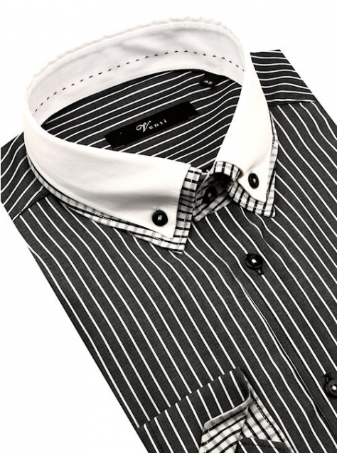 Čierno-šedá luxusná slim košeľa VENTI 5500-800