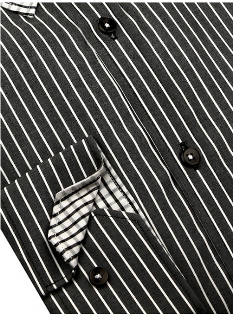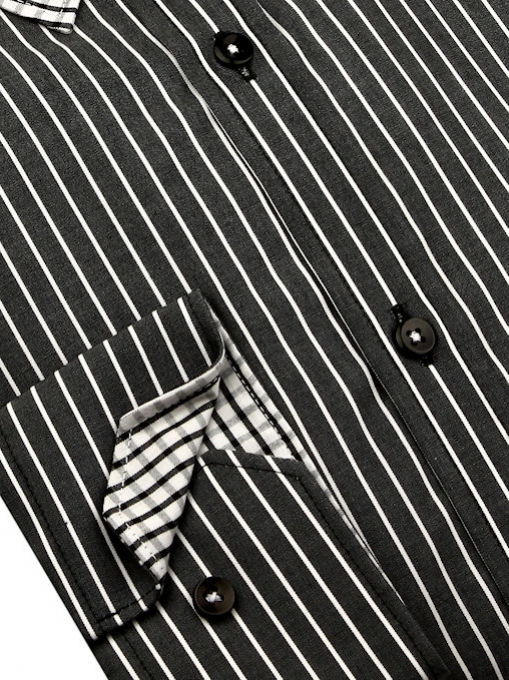 - kontrastné detaily - biely golier, kárované podšitie manžiet, čierne gombíky.