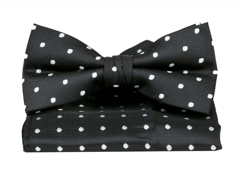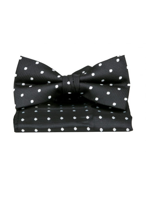 Čierny bodkovaný set motýlika a vreckovky ORSI A5